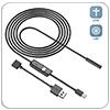 دوربین شلنگی آندوسکوپی موبایل طراحـی بی نظـیر و فوق الـعاده کاربردی قابل استفاده برای کارهای صنعتی و عمومی امکان عکس برداری و فیلم برداری در موبایل های اندروید و کامپیوتر قابلیت اتصال مستقیم به گوشی های اندورید و اتصال به کامپیوتر به وسیله OTG حتما برای شما هم این مشکل پیش آمده که خواسته اید محل هایی که غیر قابل دسترسی هستند را نگاه کنید یا به طور مثال قطعه کوچکی را گم کرده اید و با چشم مستقیم قادر به دیدن بعضی جاها مثل بالا و زیر کمد و خیلی جاهای دیگر نبوده اید این دوربین آندوسکوپ که اسم های مختلفی از جمله دوربین شلنگی یا چشم مار و ... دارد میتواند به راحتی مشکل شما را در پیدا کردن و دیدن محل های غیر قابل دسترس کمک کند کافیست نرم افزار آن را نصب کرده و سری دوربین را به گوشی اندروید یا کامپیوتر خود متصل کنید. این کالا یک دوربین بروسکوپ (سیمی حفره بین) چراغدار با 6 عدد LED و دوربین 1.3 مگا پیکسلی 7 میلیمتری میباشد. با استفاده از این دوربین امکان مشاهده حفره ها و سوراخ ها و امکان تصویری برداری از مکان های دور از دسترس را خواهید داشت. محصول فوق همچنین دارای گیره های مختلف برای خارج کردن اجسام از جاهایی که دسترسی امکان پذیر نیست و نیاز به نور برای تعیین محل شی مورد نظر دارد قابل استفاده است. دوربین آندوسکوپ ضدآب (استاندارد IP67) با قطر لنز 7mm و رزولیشن 480x640،