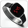 چراغ های LED قرمز رنگ ساعت را برای شما نمایش می دهد. صفحه نمایشی و مربع شکل ساعت در ابعاد 40 × 40 میلیمتر طراحی شده و ضخامت آن در قسمت بدنه 10 میلیمتر است. این ساعت